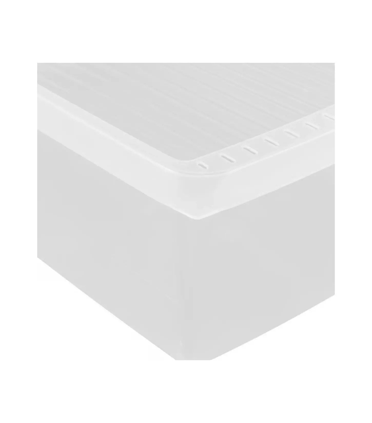 Além disso, a tampa é articulada e possui sistema de fechamento por encaixe, o que garante praticidade no manuseio e evita que a tampa se solte acidentalmente. Esse mecanismo também ajuda a proteger os sapatos contra poeira, umidade e outros agentes externos, mantendo-os em excelente estado. Além disso, a tampa permite que entre ventiação, assim não deixando cheiros na caixa ou no ambiente.