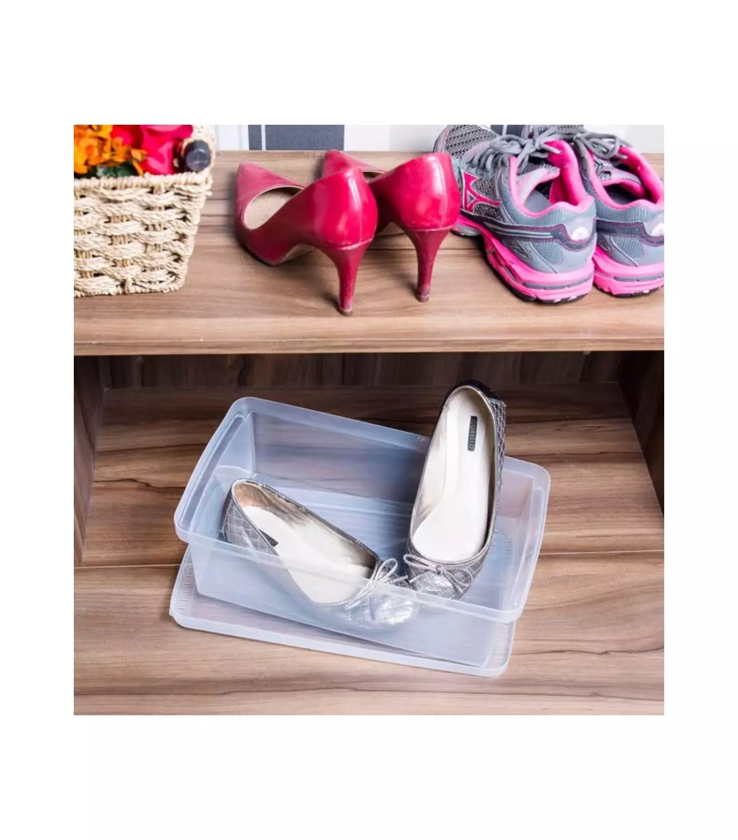 A caixa é confeccionada em plástico transparente, o que permite uma visualização rápida e fácil do conteúdo, facilitando a identificação dos pares desejados. Dessa forma, você economiza tempo na hora de escolher os sapatos que deseja usar.