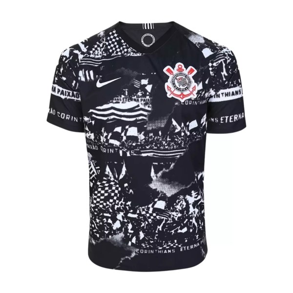 O design desta camiseta é uma verdadeira celebração do Corinthians. Com as cores tradicionais do clube, preto e branco, e detalhes em dourado, ela transmite elegância e sofisticação, representando a grandeza e a história do time. O escudo oficial do Corinthians está presente no lado esquerdo do peito, em destaque, exibindo todo o orgulho de ser parte da Fiel Torcida.