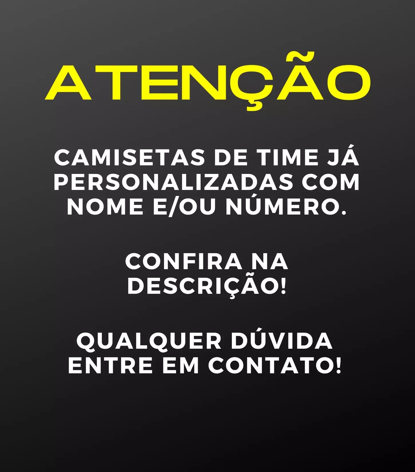 ATENÇÃO! Todas nossas camisetas de time já são personalizadas com nome e/ou número, fique atento.
