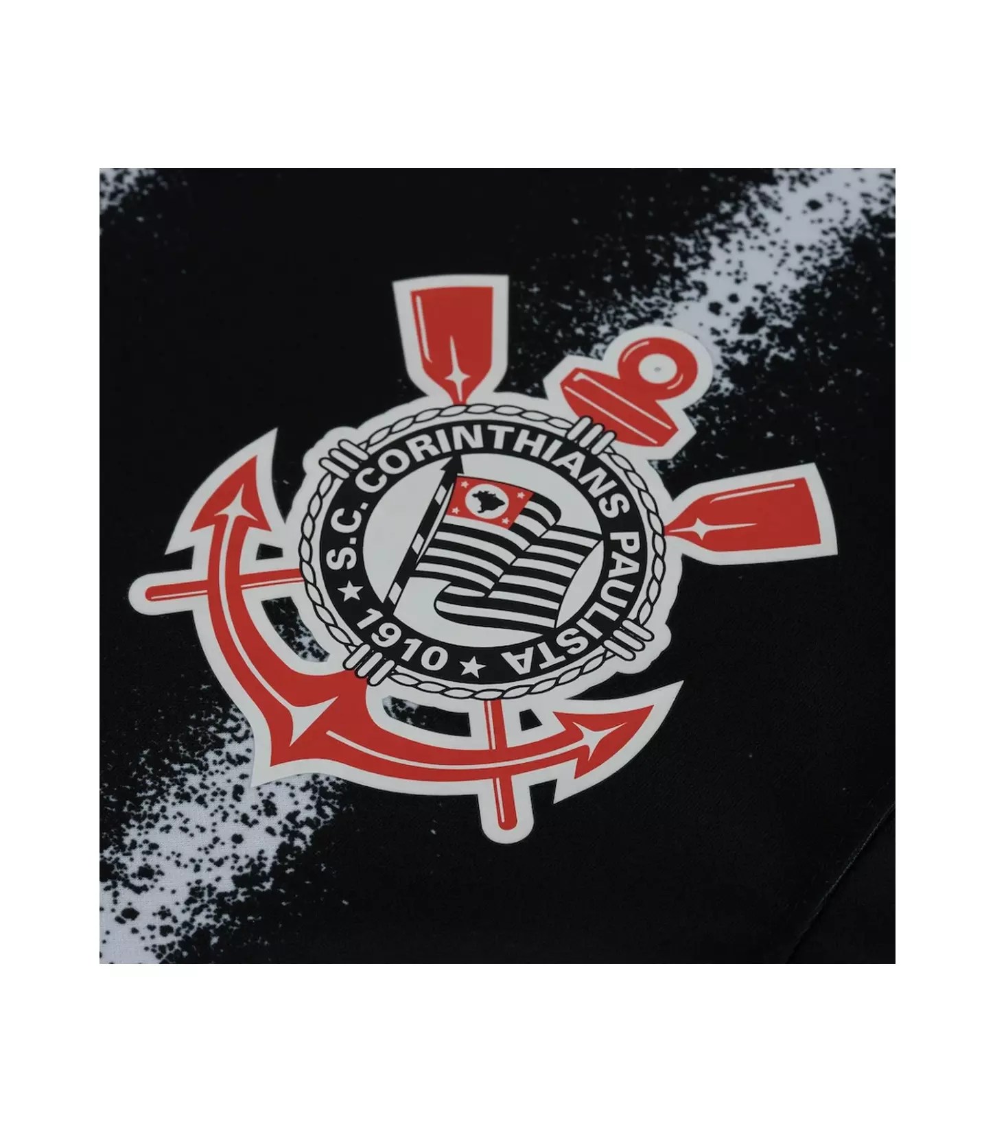 O design desta camiseta é uma verdadeira celebração do Corinthians. Com as cores tradicionais do clube, preto e branco, transmite elegância e sofisticação, representando a grandeza e a história do time. O escudo oficial do Corinthians está presente no lado esquerdo do peito, em destaque, exibindo todo o orgulho de ser parte da Fiel Torcida.