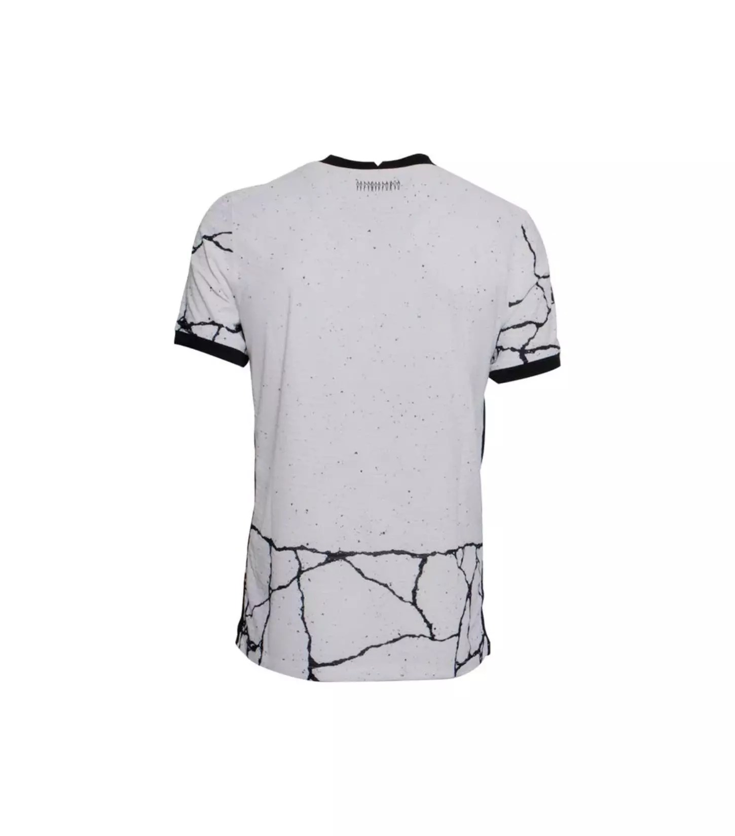 O design desta camiseta é uma verdadeira celebração do Corinthians. Com as cores tradicionais do clube, preto e branco, e detalhes em dourado, ela transmite elegância e sofisticação, representando a grandeza e a história do time. O escudo oficial do Corinthians está presente no lado esquerdo do peito, em destaque, exibindo todo o orgulho de ser parte da Fiel Torcida.